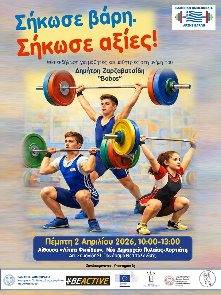 Eκδήλωση για την εκμάθηση της άρσης βαρών σε μαθητές σχολείων θα διεξαχθεί την Πέμπτη 2 Απριλίου στο νέο Δημαρχείο Πυλαίας – Χορτιάτη, από τις 10.00 έως τις 13.00